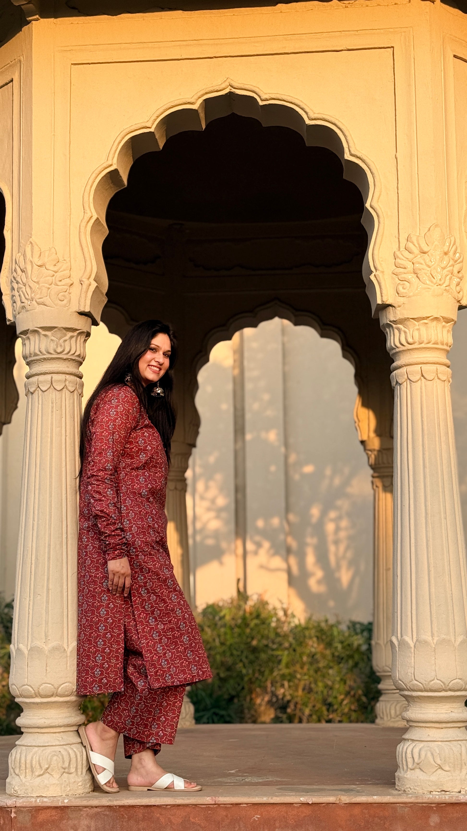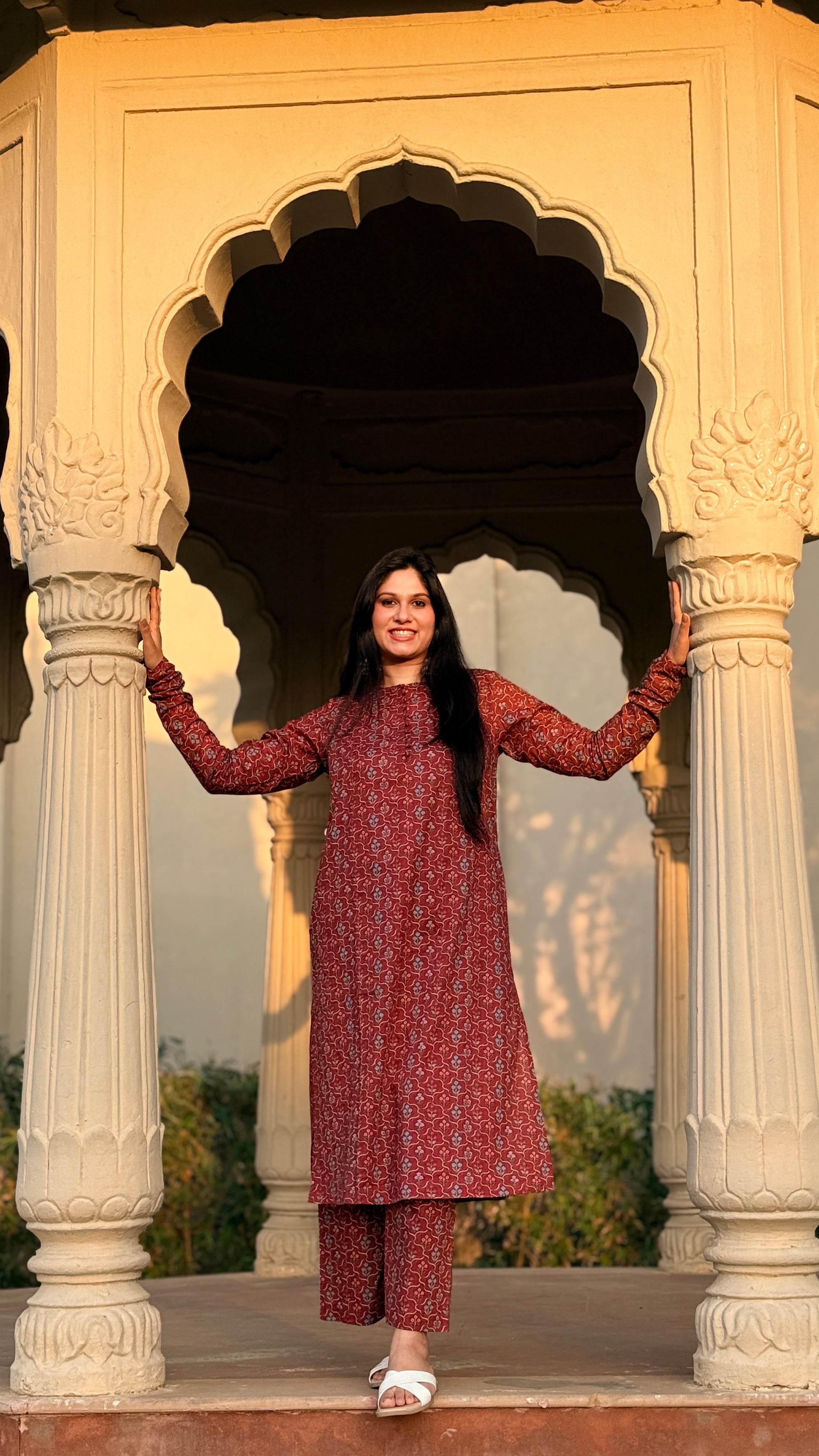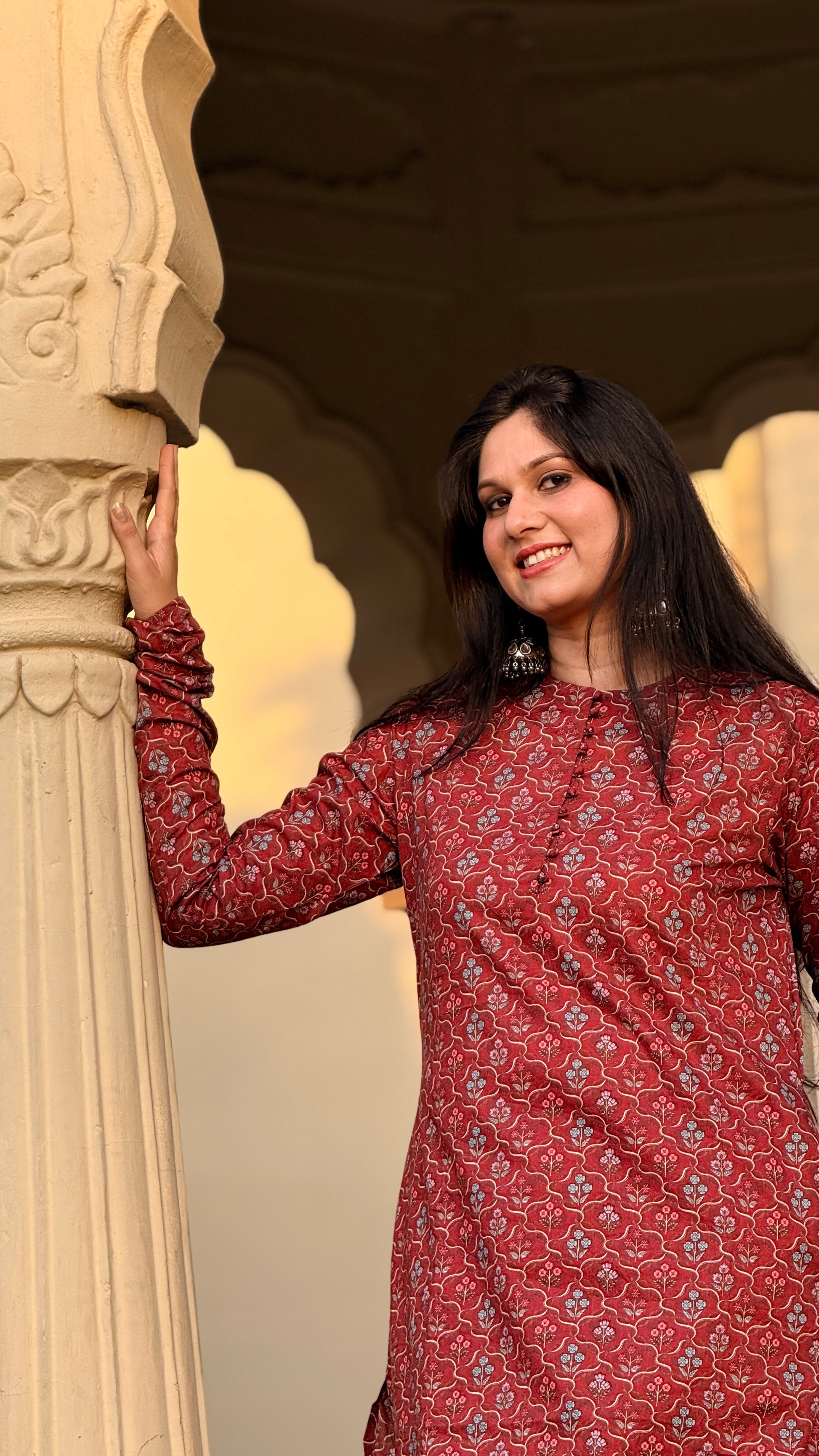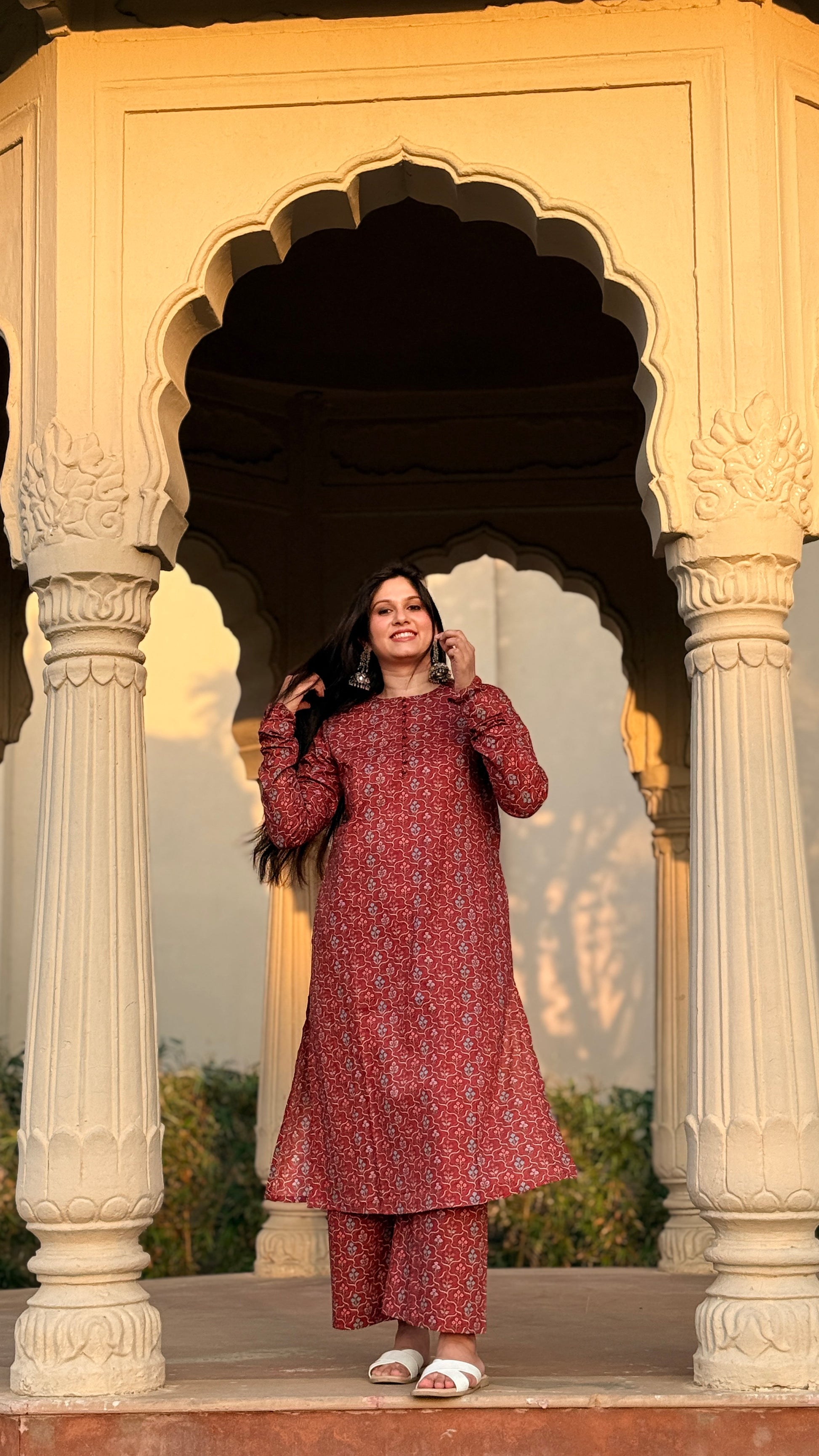 Discover understated elegance with the Poonam set, a thoughtfully designed ensemble that honors traditional aesthetics with refined simplicity. This sophisticated kurta showcases an intricate small floral print that adds visual interest without overwhelming the silhouette. Designed with functional pockets and graceful chudidaar sleeves, it pairs beautifully with straight palazzo pants for a balanced, elongated look. Ideal for celebrations, cultural events, or refined everyday styling, this set embodies timeless grace and wearable sophistication.